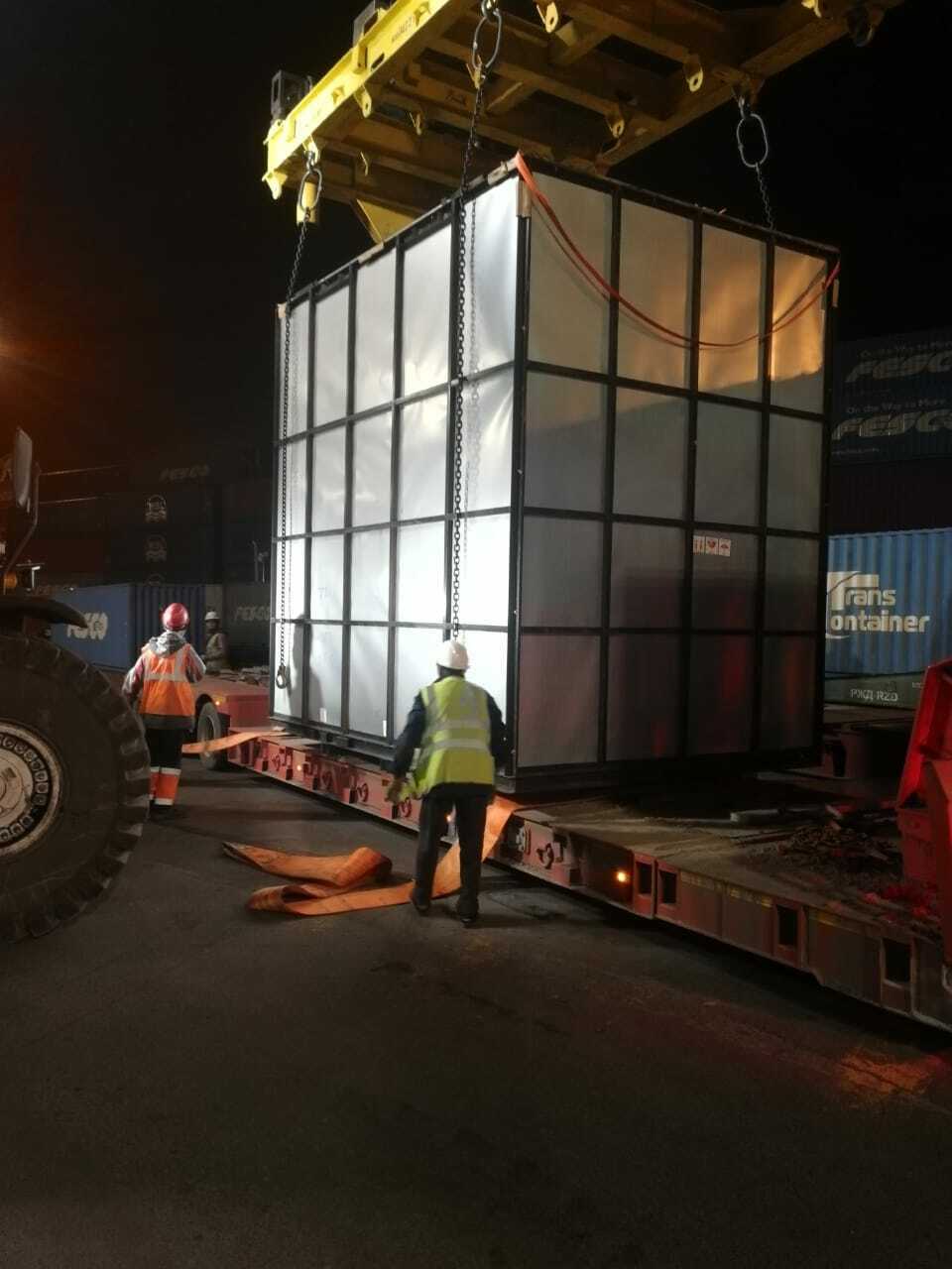Перевозка осуществлялась с привлечением специализированного автотранспорта и получением специальных разрешений на перевозку негабаритных грузов по территории Российской Федерации.